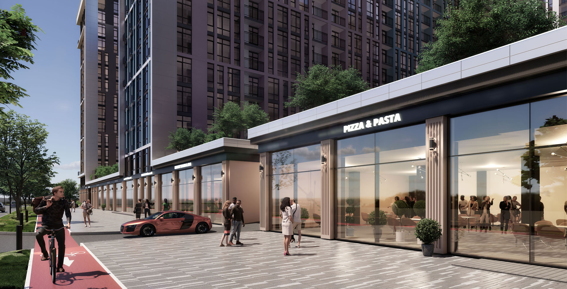 Респектабельний бульвар-променад з ресторанами, кав'ярнями, бутіками, магазинами, салонами краси стане центром життя комплексу.