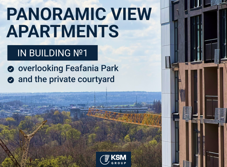 Building No.1 in Feofania CITY Residential Complex is a space where urban comfort meets a sense of calm and nature. The apartments offer panoramic views of Feofania Park — a green landscape that changes with the seasons and never loses its appeal over time.