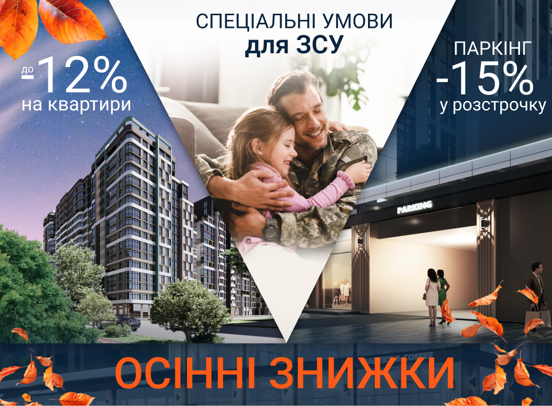 ▫️ Особливі знижки для ЗСУ: –3% у будинку №1 та –5% у будинку №7